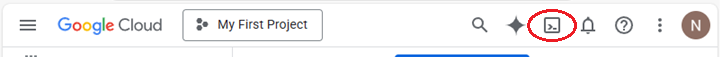 Click the Cloud Shell button at the top right corner of the page.