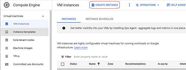7- Click Create at the bottom of the page. Wait for the instance to be created.
