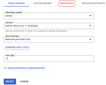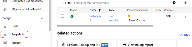 1- Navigate to the Compute Engine page and click on Snapshots in the left-hand pane.